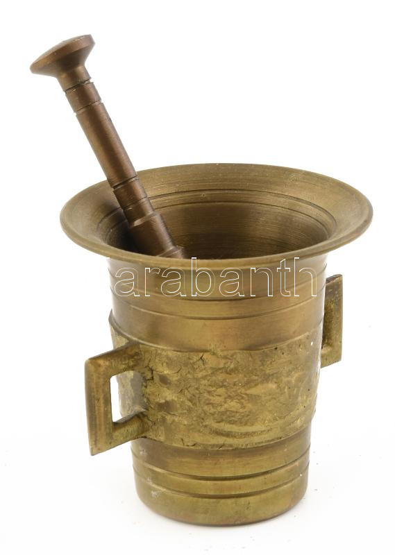 Réz mozsár, törővel, jelzés nélkül, m: 7 cm, h: 11 cm https://www.darabanth.com/hu/443-Gyorsarveres/443.0/Mutargy-papirregiseg-egyeb/Bolhapiac~500015/Rez-mozsar-torovel-jelzes-nelkul-m-7-cm-h-11-cm~II2922941