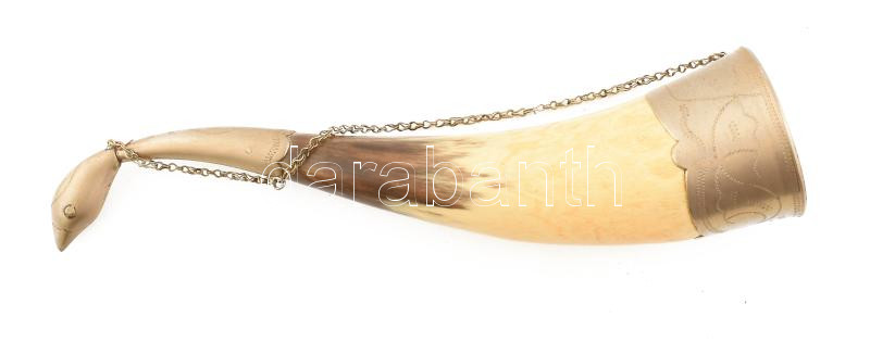Szaru díszkürt, fém szerelékkel, h: 25 cm https://www.darabanth.com/hu/443-Gyorsarveres/443.0/Mutargy-papirregiseg-egyeb/Bolhapiac~500015/Szaru-diszkurt-fem-szerelekkel-h-25-cm~II2922956