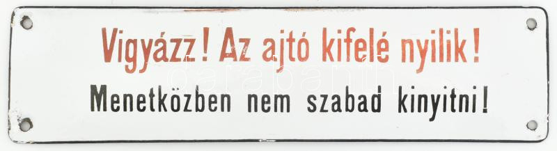 Leírás: Vigyázat! Az ajtó kifelé nyílik! zománctábla, kopásokkal, 24x6 cm