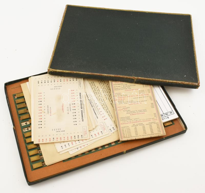 Leírás: 1942 Bridzs játék dobozában, használati utasítással, ismertető füzettel. Hiánytalan állapotban, sérült dobozzal, 36x26 cm