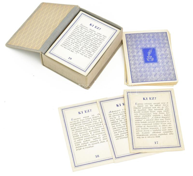 Ki ez? Irodalom történeti társasjáték, 110+2 lap, eredeti dobozában https://www.darabanth.com/hu/443-Gyorsarveres/443.0/Mutargy-papirregiseg-egyeb/Jatekok~500016/Ki-ez-Irodalom-torteneti-tarsasjatek-110plus2-lap-eredeti-dobozaban~II2920774