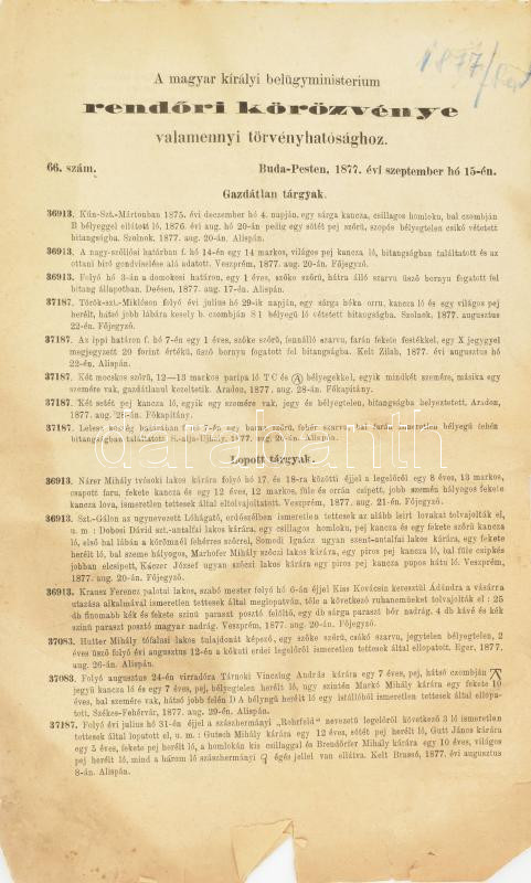 1877 Rendőri körözvények mindenféle témában, 4p sérüléssel https://www.darabanth.com/hu/443-Gyorsarveres/443.0/Mutargy-papirregiseg-egyeb/Nyomtatvanyok~1000005/1877-Rendori-korozvenyek-mindenfele-temaban-4p-serulessel~II2925289