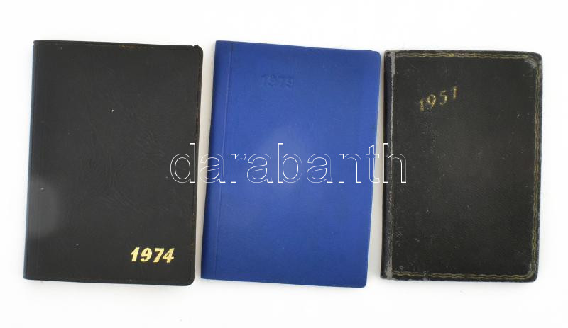 1951-1979 3 db zsebnaptár, kitöltetlen, jó állapotban https://www.darabanth.com/hu/443-Gyorsarveres/443.0/Mutargy-papirregiseg-egyeb/Nyomtatvanyok~1000005/1951-1979-3-db-zsebnaptar-kitoltetlen-jo-allapotban~II2918554