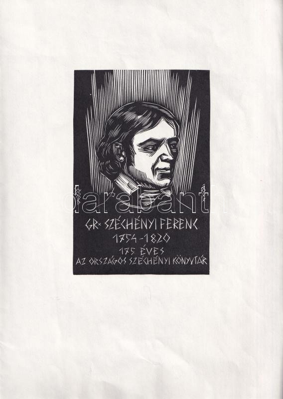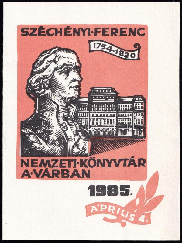1985 Meghívó az Országos Széchenyi Könyvtár új épületének megnyitójára a budai várban. + Gy.Szabó Béla (1905-1985): gróf Széchenyi Ferenc linómetszet 15x10 cm