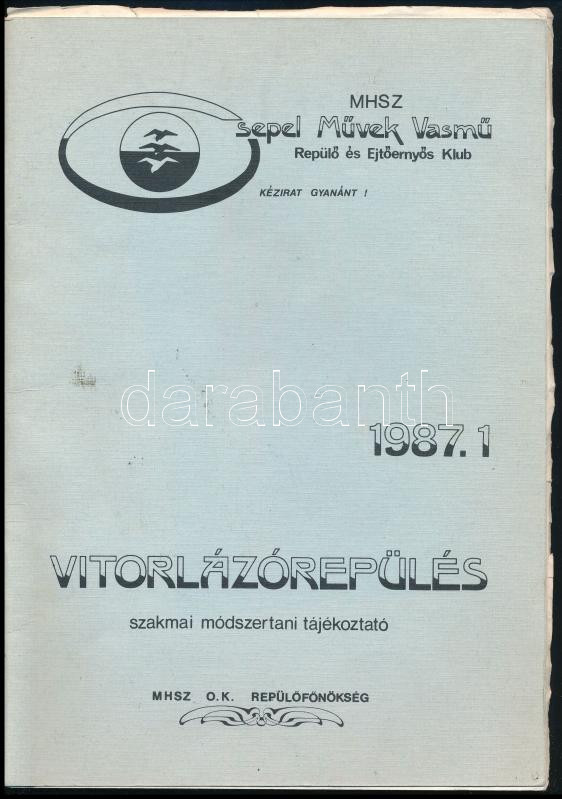 1987 Csepel Művek Vasmű, Repülő és Ejtőernyős Klub, Vitorlázórepülés szakmai módszertani tájékoztató. Bp., 1987, MHSZ OK Repülőfőnökség. 33 p. Megjelent 300 példányban. Tűzött papírkötés, borítón kopásnyomokkal, hátoldalán felületi apró sérülésekkel.