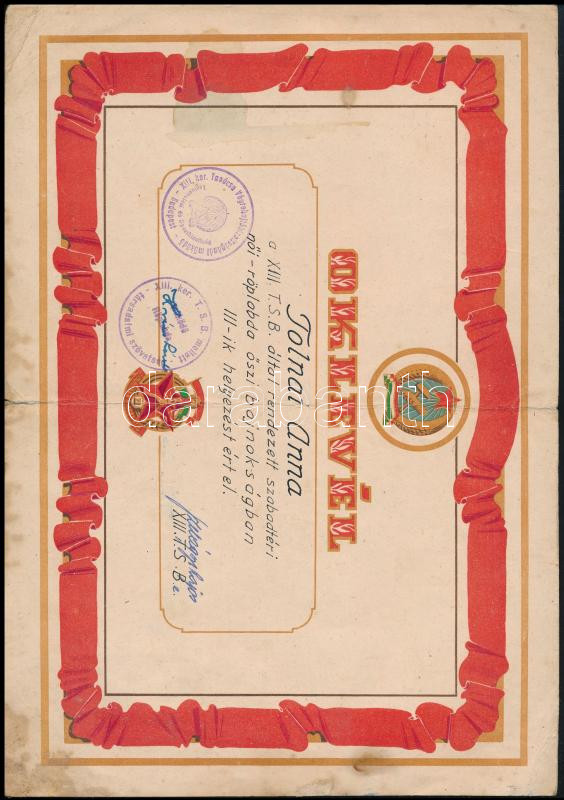 Leírás: cca 1953 Szocreál sportoklevél