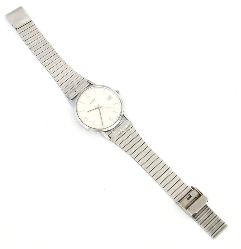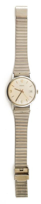 Leírás: Doxa másodpercutatós, dátumkijelzős kvarc karóra, fém szíjjal, kopással, d: 25 mm, nem kipróbált