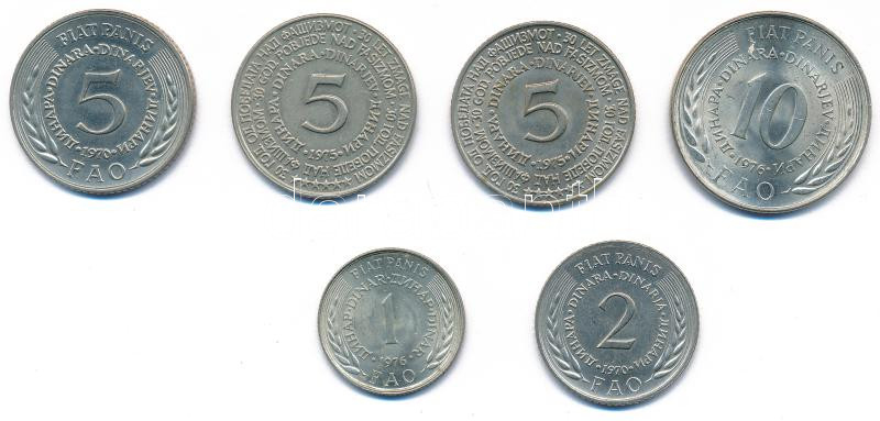 Yugoslavia 1975. 5 Dinara Cu-Ni "A fasizmus alóli felszabadulás 30. évfordulója" (2x) + 1970-1976. 1 Dinar "FAO" + 2 Dinara "FAO" + 5 Dinara "FAO" + 10 Dinara "FAO" C:AU