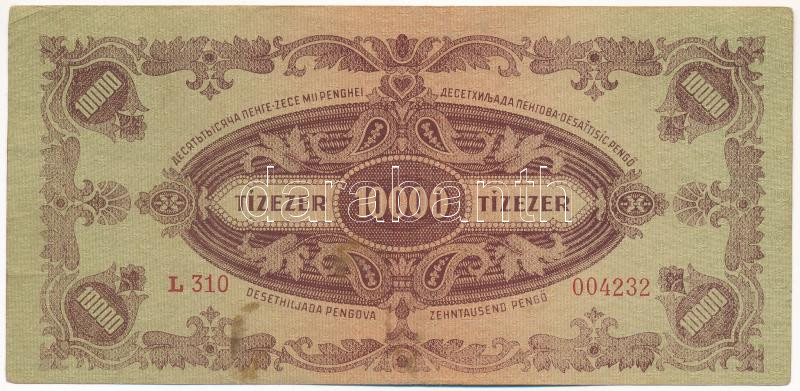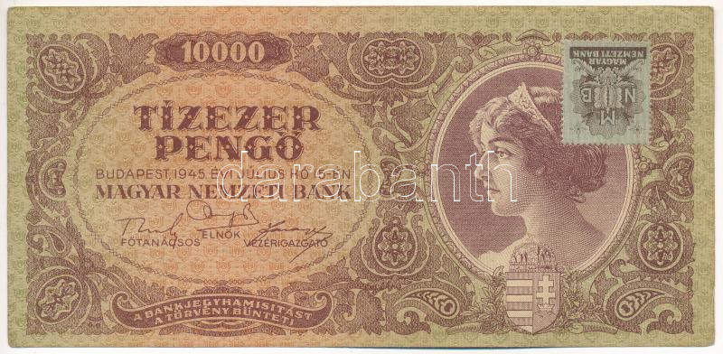 1945. 10.000P fejjel lefelé ragasztott "MNB" bélyeggel T:F Adamo P23e https://www.darabanth.com/hu/443-Gyorsarveres/443.0/Numizmatika/Magyar-bankjegyek~1500007/1945-10000P-fejjel-lefele-ragasztott-MNB-belyeggel-TF-Adamo-P23e~II2896867