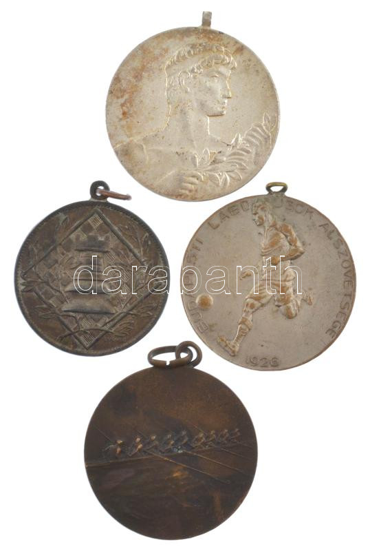 ~1929-1967. 4db-os vegyes, különböző bronz és ezüstözött bronz sport díjérem tétel, közte sakk, kenu, labdarúgás díjérem füllel, hátoldalukon gravírozott felirattal T:XF,VF