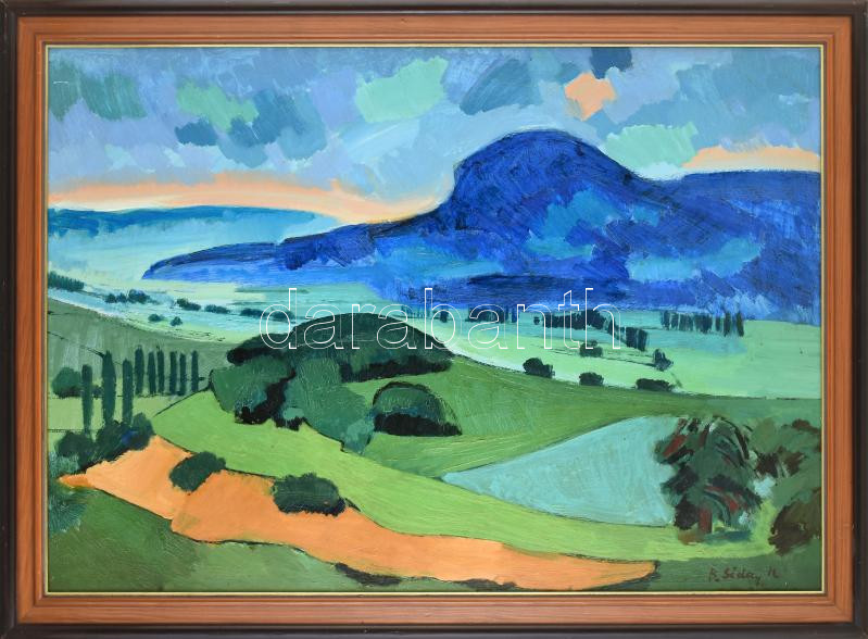 B. Séday Mária (1925-2009): A Gulácsi hegy (Balatonfelvidék). Olaj, farost, jelzett. Hátoldalán autográf felirattal. Dekoratív fakeretben. 64×90 cm. KIZÁRÓLAG SZEMÉLYES ÁTVÉTEL, NEM POSTÁZZUK! / ONLY PERSONAL COLLECTION AT OUR OFFICE!