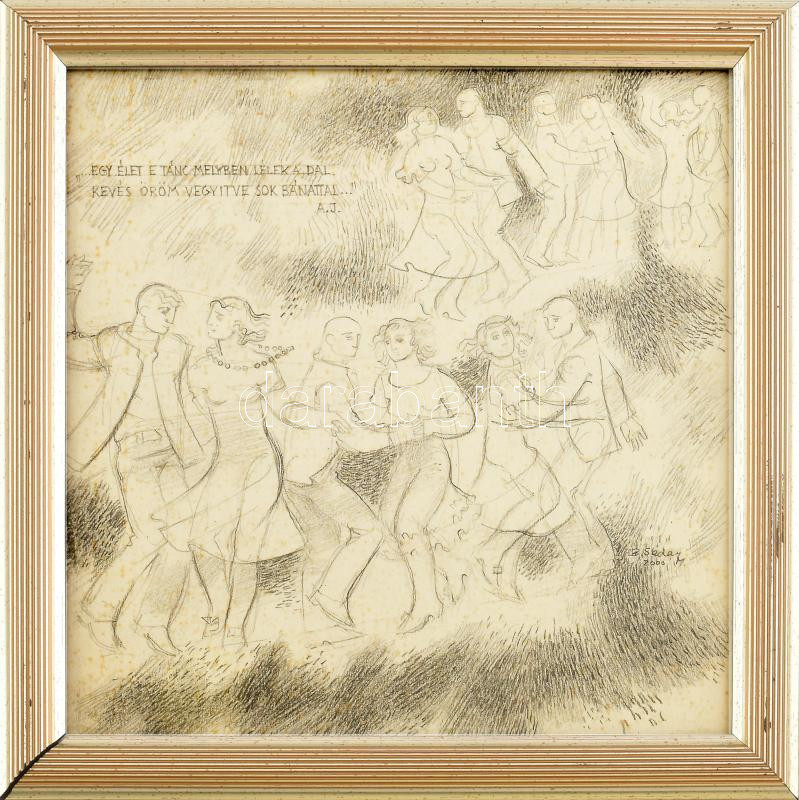 Leírás: B. Séday Mária (1925-2009): "Egy élet e tánc (...)". Ceruza, papír, jelzett. Üvegezett fakeretben. 20×20 cm