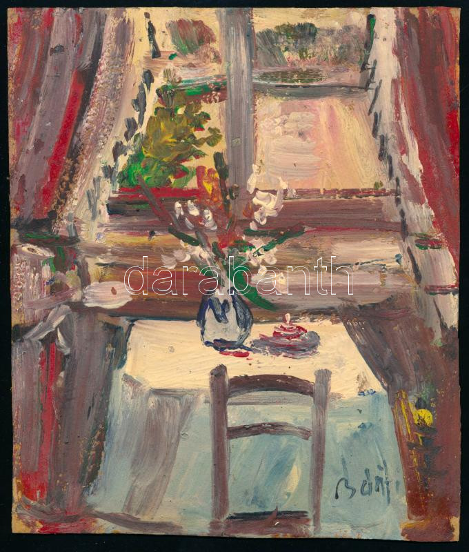 Leírás: Bánfi József (1936): Enteriör. Olaj, karton, Jelzett 22x18 cm