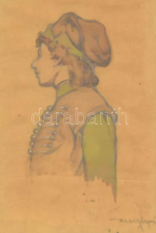 Basch Árpád (1873-1944): Reneszánsz ifjú. Vegyes technika, papír (hull... https://www.darabanth.com/hu/444-Gyorsarveres/444.0/Festmenyek-es-grafikak/Festmenyek-es-grafikak~500001/Basch-Arpad-1873-1944-Reneszansz-ifju-Vegyes-technika-papir-hullamos-jelzett-uvegeze~II2930372