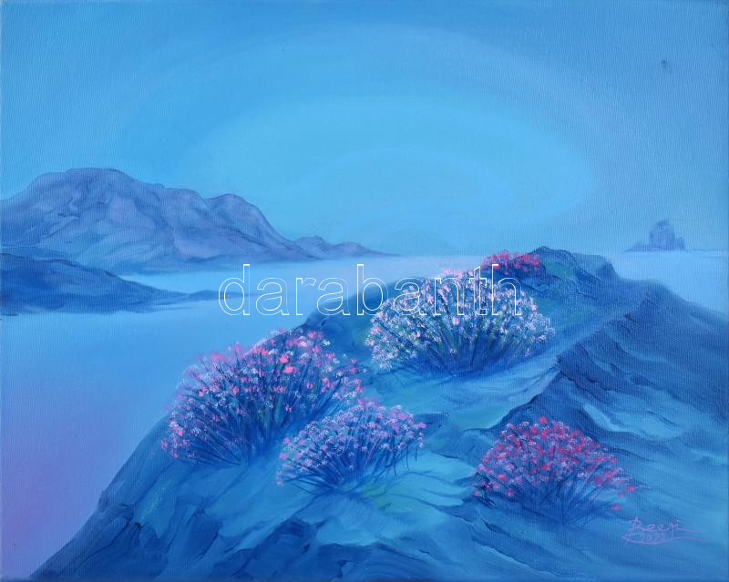 Leírás: David Beeri (1951-): Szépség. Olaj, vászon. Jelezve jobbra lent, a hátoldalán autográf felirattal. 40x50 cm
