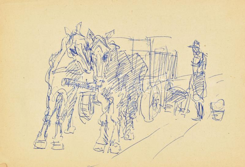 Durkó Gábor (1916-2003): Lovak és lovasszekér, 1950 (2 db rajz egy lap... https://www.darabanth.com/hu/444-Gyorsarveres/444.0/Festmenyek-es-grafikak/Festmenyek-es-grafikak~500001/Durko-Gabor-1916-2003-Lovak-es-lovasszeker-1950-2-db-rajz-egy-lapon-Golyostoll-papir-~II2934085