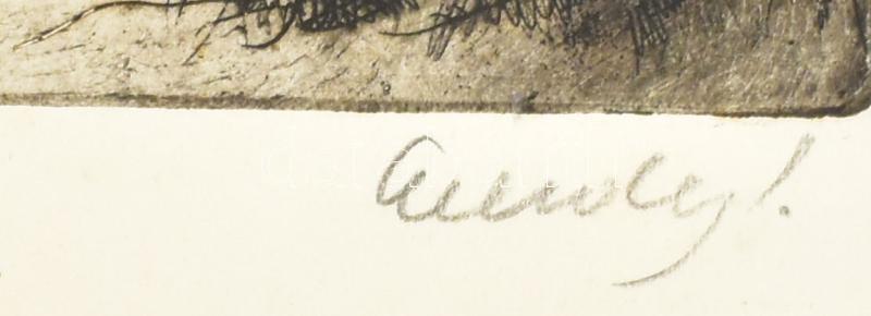 Leírás: Élesdy István (1912-1987): Kis házak. Rézkarc, papír, jelzett, kartonra kasírozva, lap széle kissé foltos, 30x38,5 cm