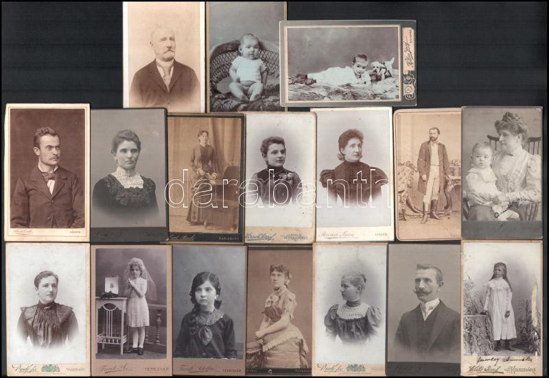17 Db vizitkártya Erdélyből, több fotóművésztől és városból. Veress F. Kolozsvár, Hollósi József Szatmár, B. Paul Temesvár, stb. A képek változó állapotban vannak, keményhátúak és 6,8 x 10,8 cm átlagban.