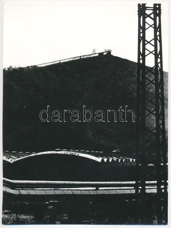1968 Müller Ferenc pecséttel jelzett vintage fotóművészeti alkotása, ezüst zselatinos fotópapíron, a felvétel Salgótarjánban készült, a Népművelési Intézet központi fotós alkotótelepén; a meddőhányó tetején éjszaka is világító, szép nagy vörös csillag, 24x17,8 cm
