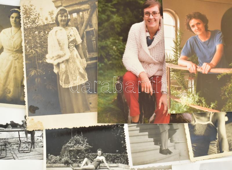Leírás: 40 db jórészt fekete-fehér amatőr fotó csinos nőkről, vegyes méretben.
