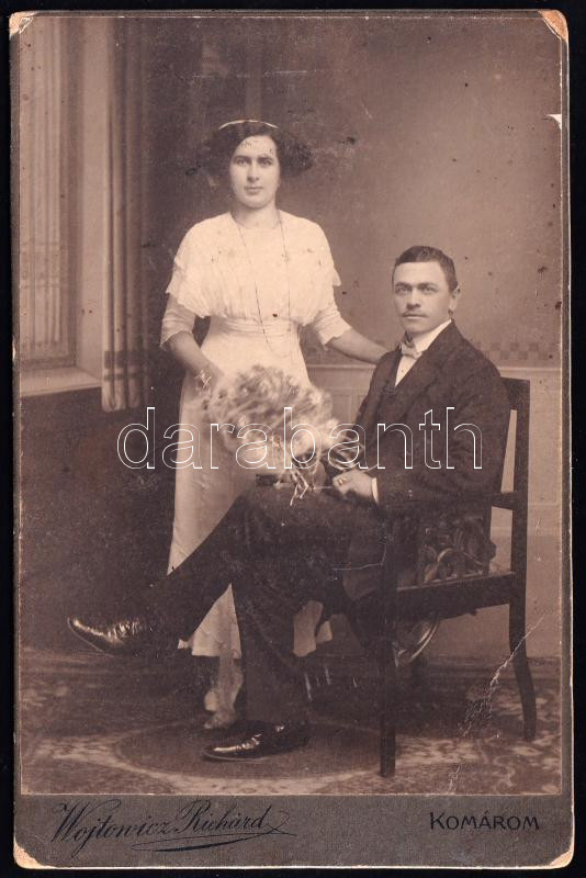 Cca 1910-1920 Fiatal férj és feleség, Wojtowicz Richárd fényképművész ... https://www.darabanth.com/hu/444-Gyorsarveres/444.0/Fotomuveszet/Foto~500025/Cca-1910-1920-Fiatal-ferj-es-feleseg-Wojtowicz-Richard-fenykepmuvesz-komarimi-mutermeben~II2930397
