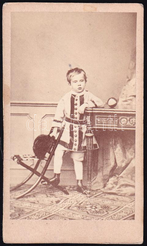 Leírás: cca 1860-1870 Rudolf főherceg gyerekkori portréja, keményhátú fotó, vizitkártya, 10,5x6 cm