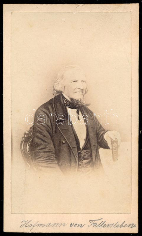 cca 1860 Photo of August Heinrich Hoffmann von Fallersleben (1798-1874) Gemran poet, board photo, W. Halffter, Berlin, 10x6 cm