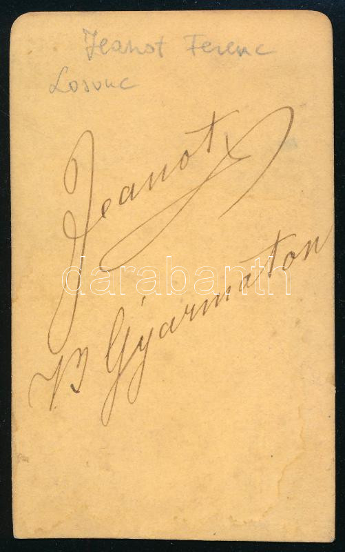 cca 1865 Jeanot Ferenc losonci fotó Balassagyarmaton készített, hátold... https://www.darabanth.com/hu/444-Gyorsarveres/444.0/Fotomuveszet/Foto~500025/cca-1865-Jeanot-Ferenc-losonci-foto-Balassagyarmaton-keszitett-hatoldalon-kezzel-feliratozott-~II2932590