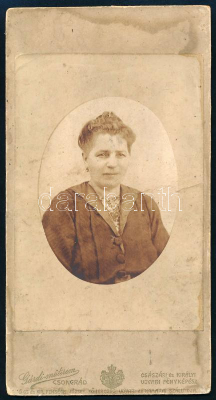 cca 1900-1910 Hölgy portréja, keményhátú kabinetfotó a csongrádi Gárdi... https://www.darabanth.com/hu/444-Gyorsarveres/444.0/Fotomuveszet/Foto~500025/cca-1900-1910-Holgy-portreja-kemenyhatu-kabinetfoto-a-csongradi-Gardi-muterembol-kisse-~II2925607
