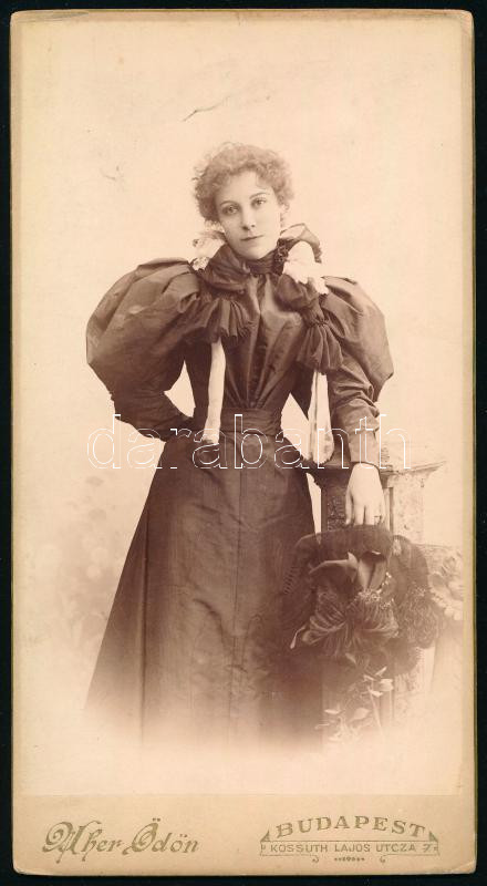 Leírás: cca 1900 Török Irma (1875-1945) színésznő portréfotója, keményhátú fotó Uher Ödön budapesti műterméből, 20x11 cm
