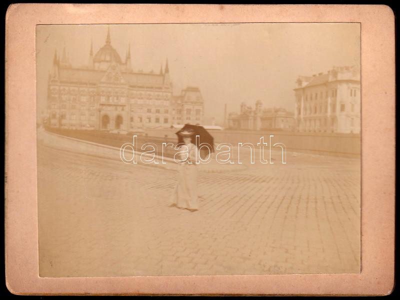 Leírás: cca 1905 Budapest, Kossuth-tér fotója, előtérben a Parlamenttel, háttérben a kúria épületével, keményhátú fotó kartonon, 9x12 cm