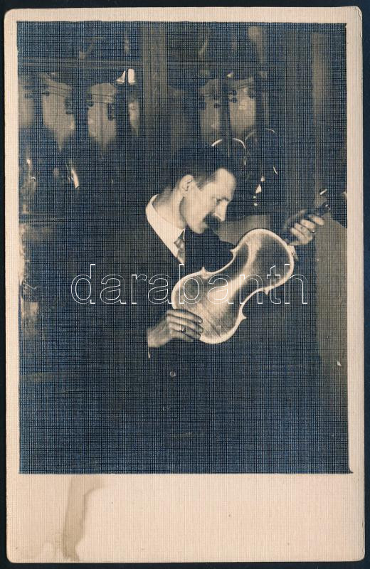 cca 1920 Laumann Róbert hegedűkészítő műhelyében, fotólap, 13,5x8,5 cm https://www.darabanth.com/hu/444-Gyorsarveres/444.0/Fotomuveszet/Foto~500025/cca-1920-Laumann-Robert-hegedukeszito-muhelyeben-fotolap-13-5x8-5-cm~II2926124