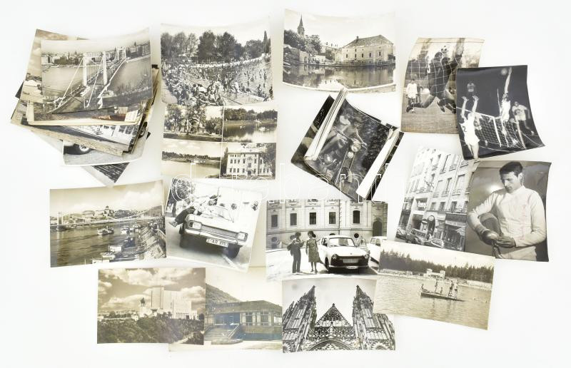 Leírás: cca 1950-1970 cca 40 db fotó, vegyes témákban, hullámos állapotban