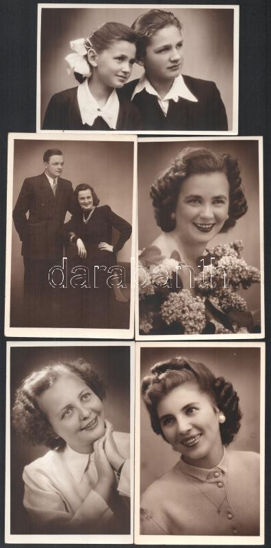 cca 1960 előtt készült felvételek az egri Foto-Gráf műteremben, 13 db vintage fotó ezüst zselatinos fotópapíron, egy kép jelzett, tizenkét kép hátoldala képeslapként vonalazva, 14x8,6 cm
