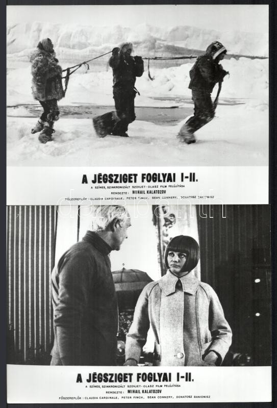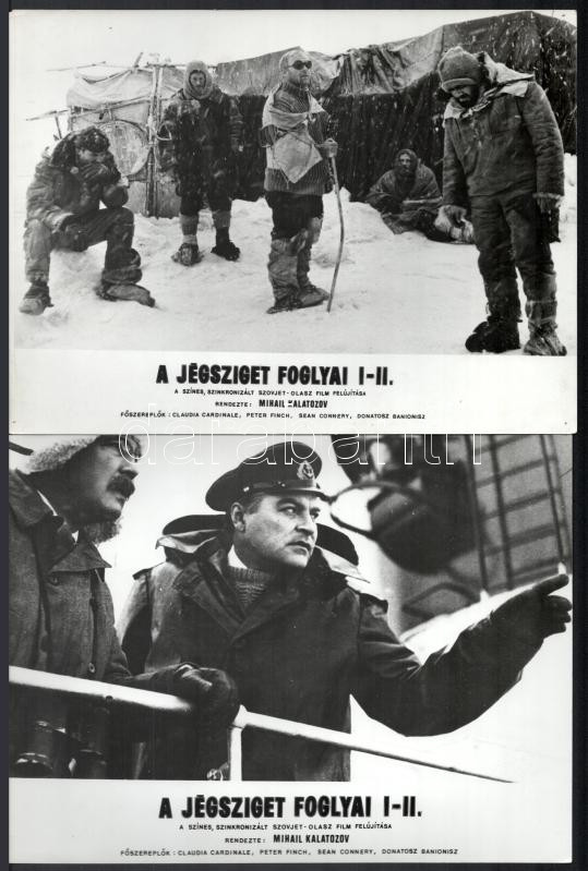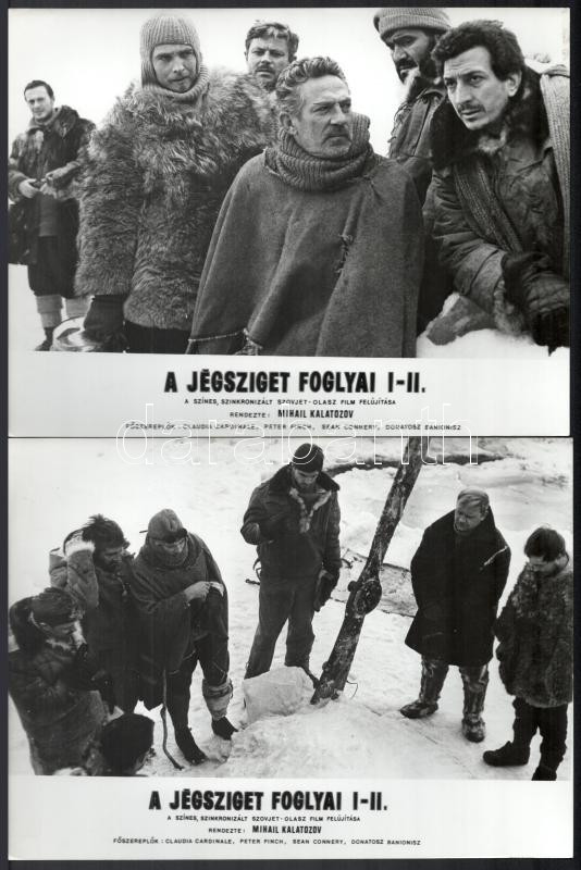 cca 1969 ,,A Jégsziget foglyai" című szovjet - olasz film jelenetei és szereplői, 9 db vintage produkciós filmfotó ezüst zselatinos fotópapíron, a használatból eredő (esetleges) kisebb hibákkal, 18x24 cm