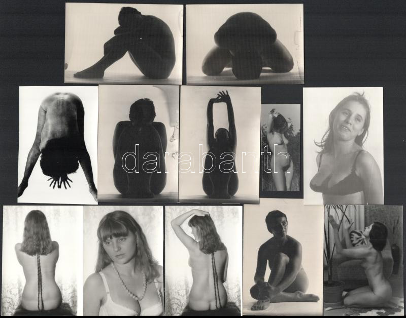 cca 1979 Marinkay István (1920-?) veszprémi fotóművész hagyatékából 13 db vintage aktfotó, ezüst zselatinos fotópapíron, jelzés nélkül, 9x6 cm és 7x3 cm között