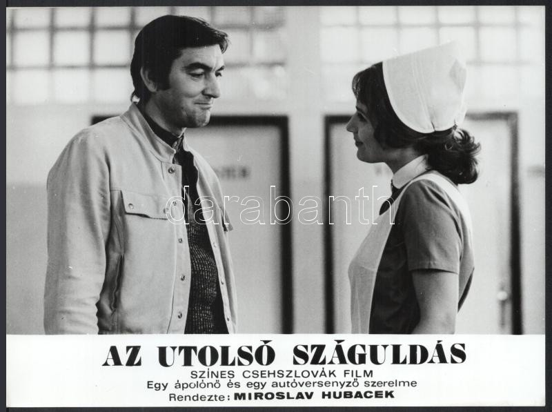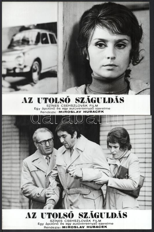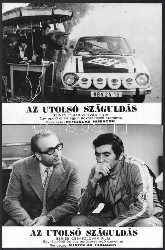 cca 1986 előtt készült ,,Az utolsó száguldás" című csehszlovák film jelenetei és szereplői, 5 db vintage produkciós filmfotó ezüst zselatinos fotópapíron, a használatból eredő (esetleges) kisebb hibákkal, 18x24 cm
