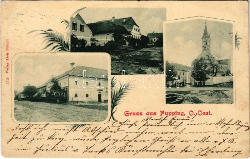 1901 Pupping, Kirche. Verlag Alois Steindl / church. Art Nouveau (fl) https://www.darabanth.com/hu/444-Gyorsarveres/444.0/Kepeslapok/Ausztria~2000031/1901-Pupping-Kirche-Verlag-Alois-Steindl-church-Art-Nouveau-fl~II2933771