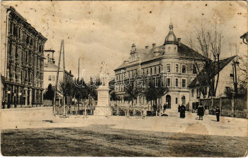 Leírás: 1916 Villach, Hans Gasser Platz, Sparcasse / square, monument, savings bank (Rb)