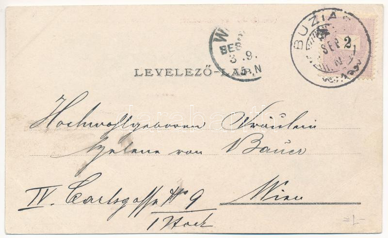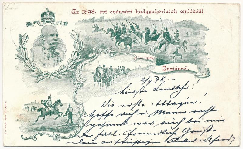 1898 (Vorläufer) Buziás, Az 1898-as Császári hadgyakorlatok emlékéül. Ferenc József. Freistadt Mór kiadása / Erinnerung an die Kaisermanöver 1898. / In memory of the royal maneuvers and the presence of his Majesty the Emperor Franz Joseph I of Austria. Art Nouveau, floral (EB)