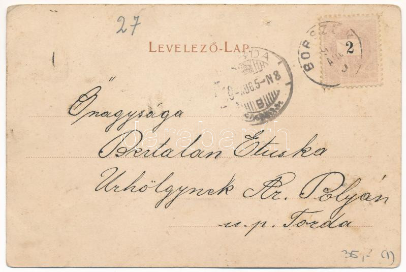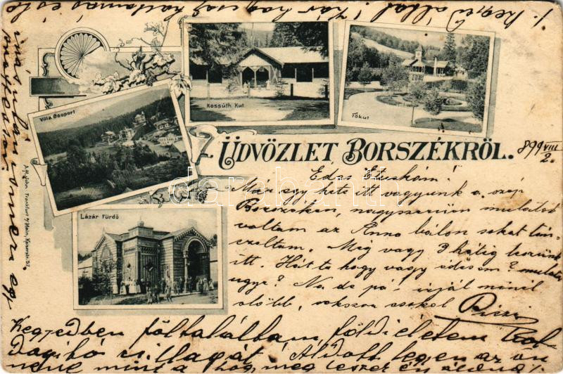 1899 (Vorläufer) Borszék, Borsec; Főkút, Lázár fürdő, Kossuth kút, Villa csoport / spa, spring source, bath, villas. Art Nouveau, floral (lyuk / pinhole)