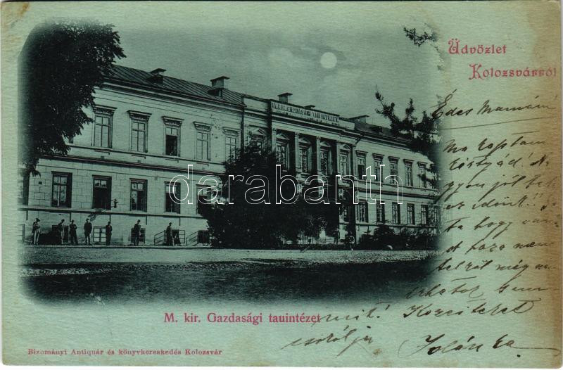 1899 (Vorläufer) Kolozsvár, Cluj; M. kir. gazdasági tanintézet este. B... https://www.darabanth.com/hu/444-Gyorsarveres/444.0/Kepeslapok/Erdely~2000006/1899-Vorlaufer-Kolozsvar-Cluj-M-kir-gazdasagi-tanintezet-este-Bizomanyi-Antiquar-es-kC3~II2932631