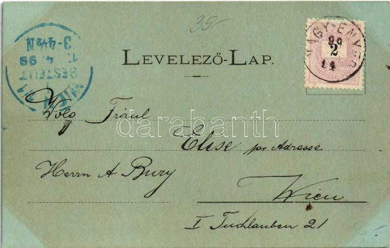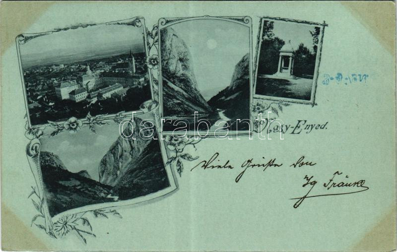 Leírás: 1899 (Vorläufer) Nagyenyed, Aiud; látkép, sétatéri síremlék / general view, monument. Art Nouveau, floral (vágott / cut)