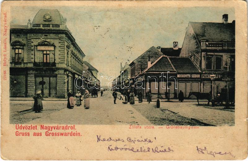1901 Nagyvárad, Grosswardein, Oradea; Zöldfa utca, Schlosser C., Mosko... https://www.darabanth.com/hu/444-Gyorsarveres/444.0/Kepeslapok/Erdely~2000006/1901-Nagyvarad-Grosswardein-Oradea-Zoldfa-utca-Schlosser-C-Moskovits-Szidor-Beczkay-Lajos-C3~II2890628