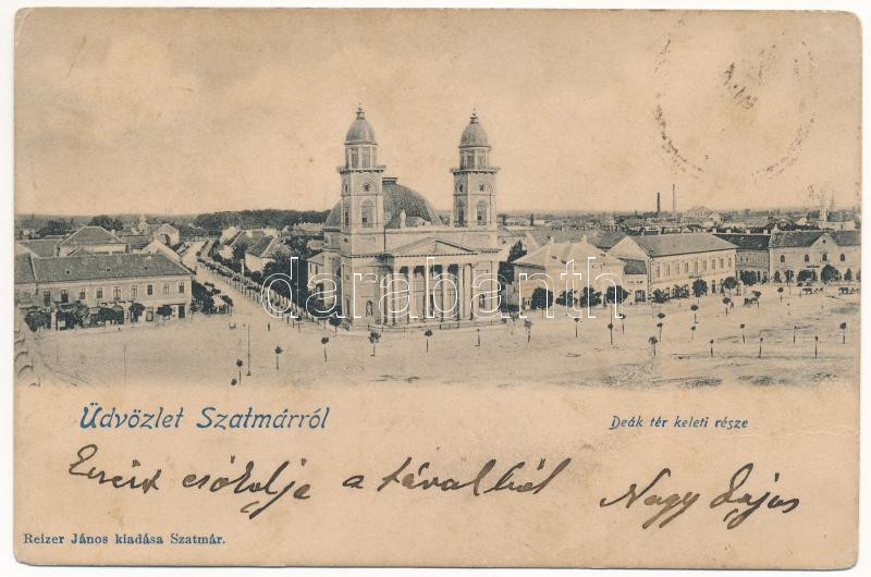 1903 Szatmárnémeti, Szatmár, Satu Mare; Deák tér keleti része, üzletek... https://www.darabanth.com/hu/444-Gyorsarveres/444.0/Kepeslapok/Erdely~2000006/1903-Szatmarnemeti-Szatmar-Satu-Mare-Deak-ter-keleti-resze-uzletek-Reizer-Janos-kiadas~II2893571