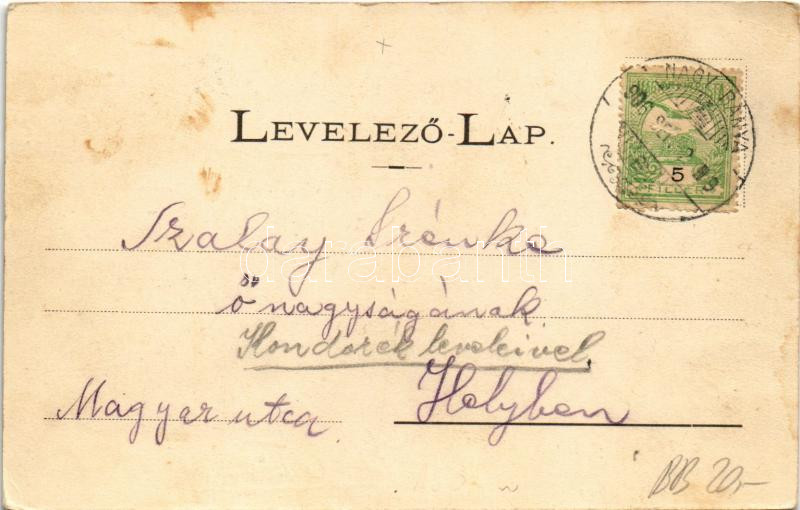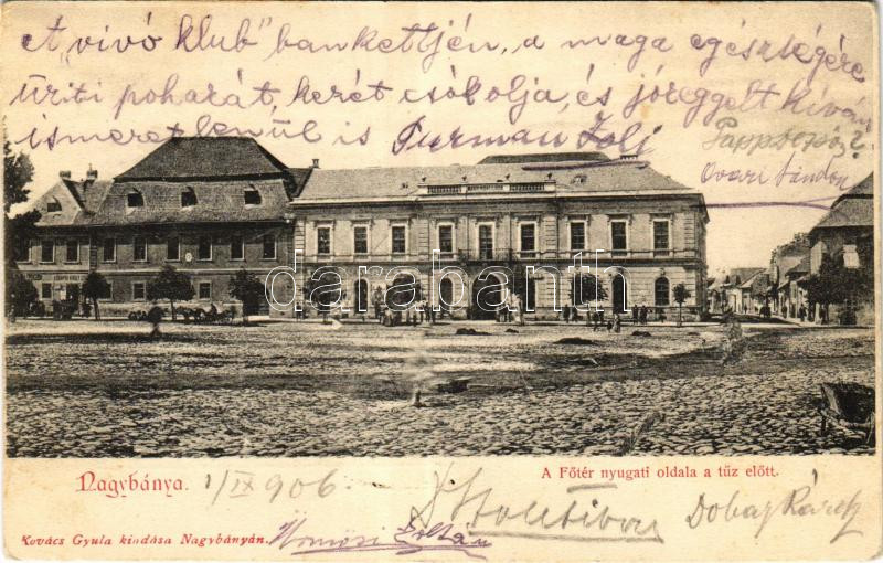 1906 Nagybánya, Baia Mare; Fő tér nyugati oldala a tűz előtt, sör és borcsarnok. Kovács Gyula kiadása / main square before the fire, wine and beer hall (EK)