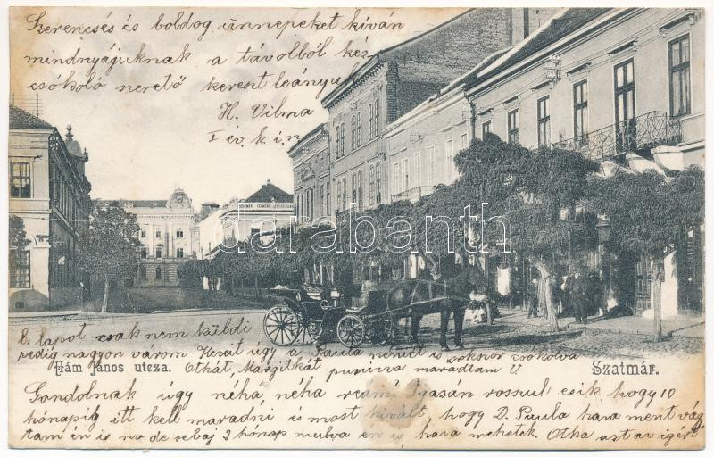 1906 Szatmárnémeti, Satu Mare; Hám János utca, lovas hintó. Divald Kár... https://www.darabanth.com/hu/444-Gyorsarveres/444.0/Kepeslapok/Erdely~2000006/1906-Szatmarnemeti-Satu-Mare-Ham-Janos-utca-lovas-hinto-Divald-Karoly-823-street-horse~II2931564