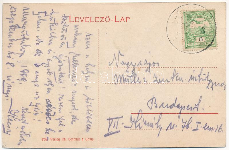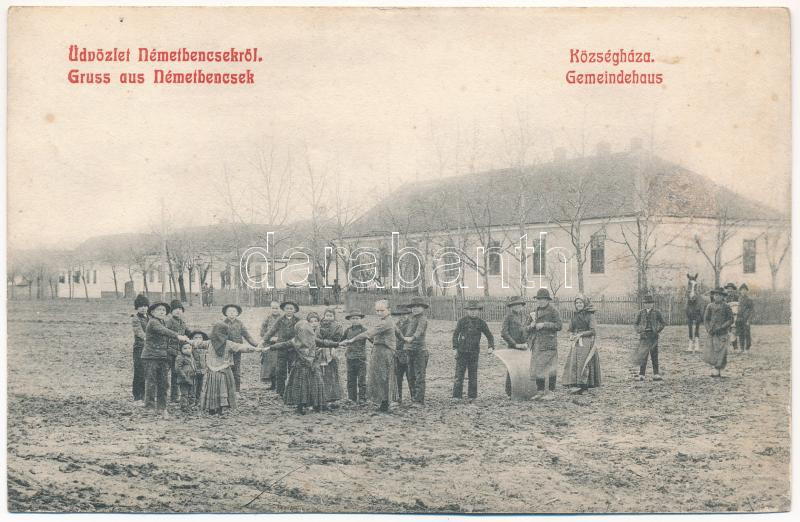 Leírás: 1909 Felsőbencsek, Németbencsek, Német-Bencsek, Bencecu de Sus (Temes); községháza / Gemeindehaus / town hall