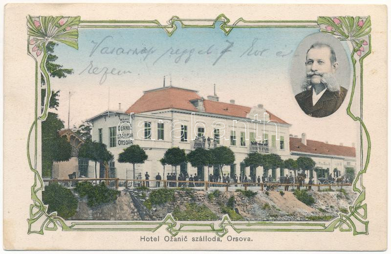 1909 Orsova, Ozanic szálloda a tulajdonos Ozanic Ferenc arcképével / h... https://www.darabanth.com/hu/444-Gyorsarveres/444.0/Kepeslapok/Erdely~2000006/1909-Orsova-Ozanic-szalloda-a-tulajdonos-Ozanic-Ferenc-arckepevel-hotel-and-its-owner-Art-Nou~II2892239