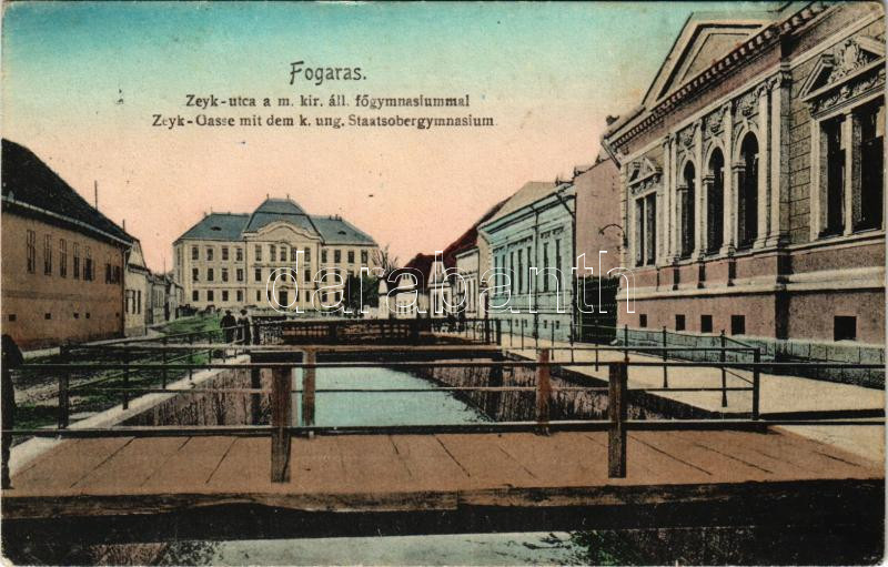 1911 Fogaras, Fagaras; Zeyk utca, M. kir. állami főgimnázium. Thierfeld Dávid kiadása / Zeyk-Gasse mit dem k. ung. Staatsobergymnasium / street view, grammar school (EB)